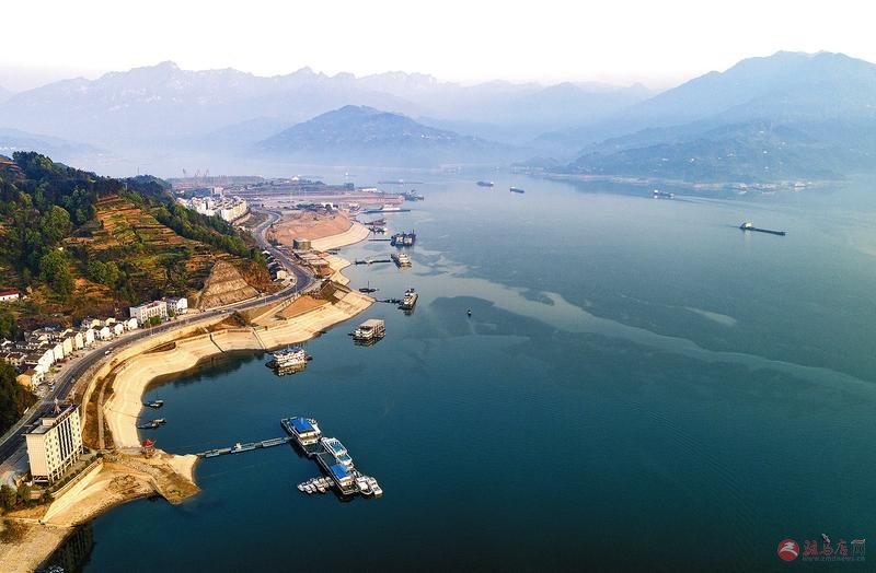 4 月 8 日拍摄的三峡大坝上游湖北省宜昌市秭归县秭归港 (无人机拍摄) 。