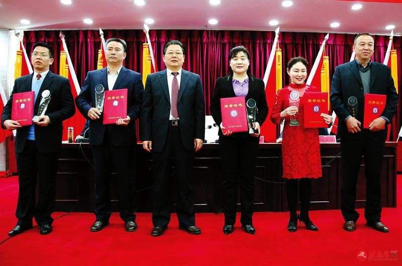 市委副书记、 市长朱是西 (左一) 为获得市长质量奖企业代表颁奖。记者 黄育南 摄