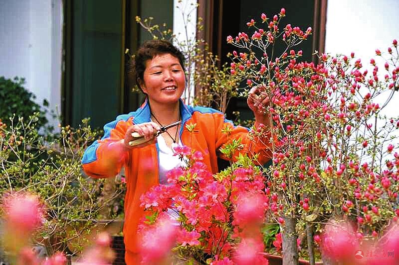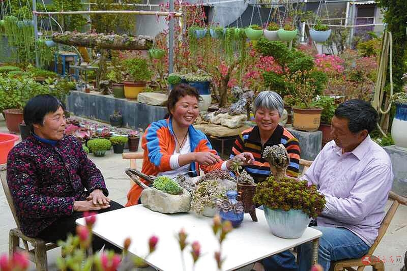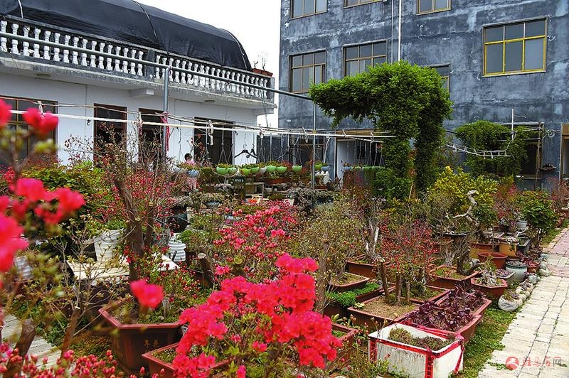 王明青以前在外打工, 后来回家管孩子上学, 闲来没事就开始琢磨着养花。她开始只是小打小闹,养些常见的花。有一次, 她去信阳看到映山红盆景被深深吸引了, 然后她便从信阳、 湖北等地买了很多映山红, 精心侍弄, 如今满院鲜花盛开,迎来很多人欣赏拍照。2014年, 她又开始学着养多肉植物。她利用别人丢弃的枯木、 石头、 咸菜坛子、 酒瓶等废物种植多肉, 这些在别人眼里没用的东西到她这都成了宝贝。