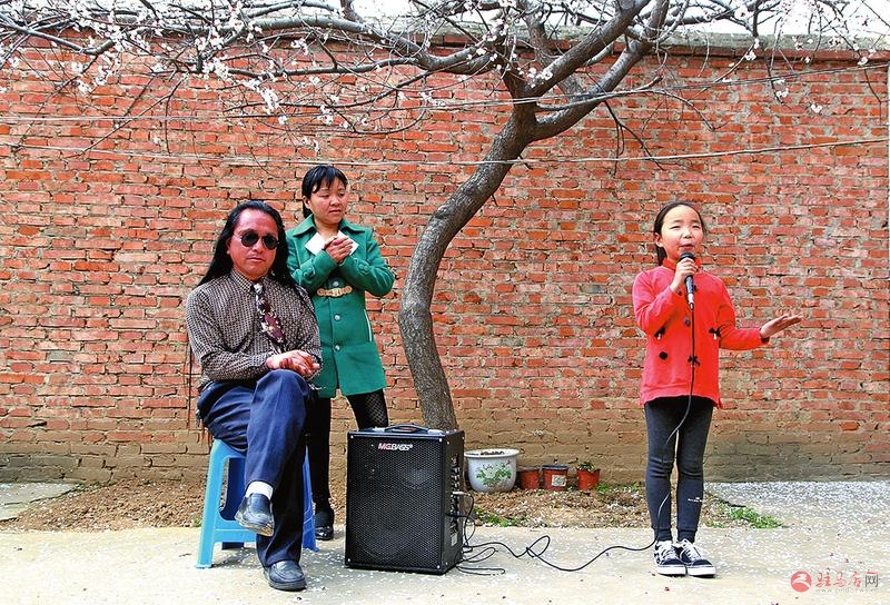 春和景明, 桃李春风。农家庭院, 器乐声声。这是哪?盲人张广田的家。张广田是谁?他响誉羊城, 唱响家乡, 人送雅号“当代阿炳” 和 “六大忙” 。家在哪?西平县五沟营镇洄浀赵村。