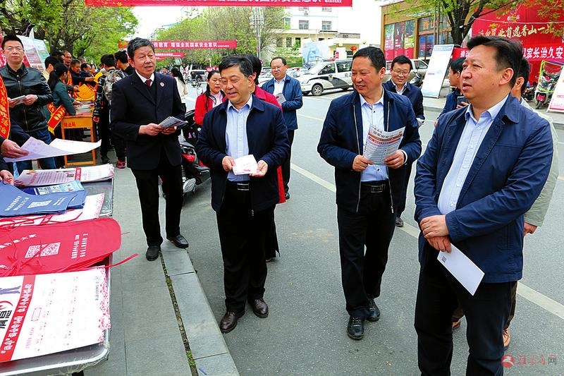 4月15日, 确山县开展以 “坚持总体国家安全观, 着力防范化解重大风险, 喜迎中华人民共和国成立70周年” 为主题的全民国家安全教育日宣传活动。