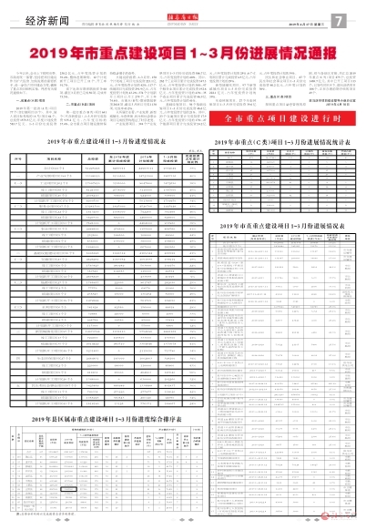 2019年市重点建设项目1~3月份进展情况通报