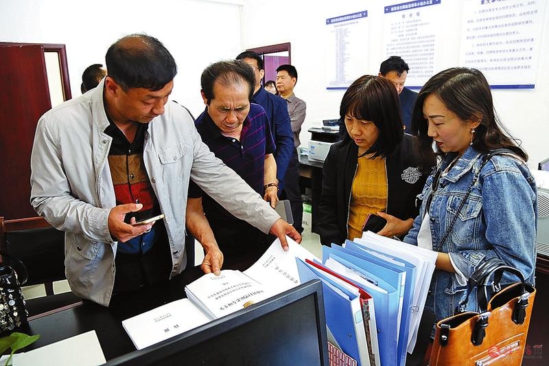 驿城区观摩组在新蔡县扫黑除恶办浏览相关资料。 记者 吴勇峰 摄