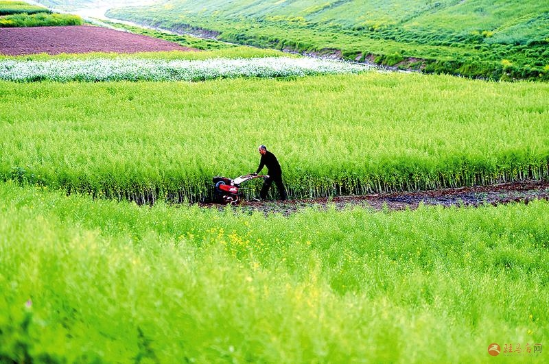 4 月 20 日, 是二十四节气中的谷雨, 在新蔡县宋岗乡杜湾村洪汝河畔, 当地农民抢抓农时翻土耕地、 施肥播种, 田间地头一派忙碌景象。