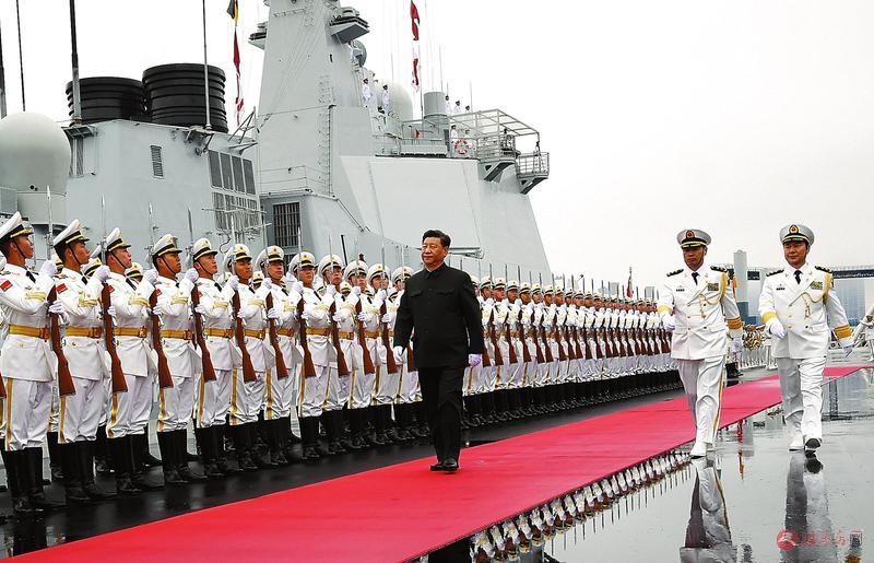 新时代,新航程。习近平对人民海军建设高度重视,先后多次视察海军部队,发出“努力把人民海军全面建成世界一流海军”的号召。人民海军正以崭新姿态阔步向前、逐梦海天。15时许,检阅舰调整航向,向参加庆典活动的来访舰艇编队驶去。