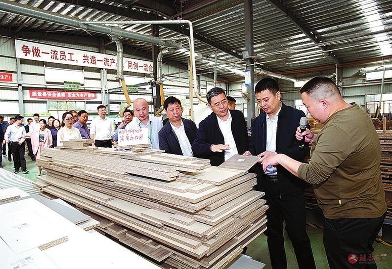 考察组深入禾普环保家居了解企业环保工艺和产品。通讯员 刘俊凯 摄