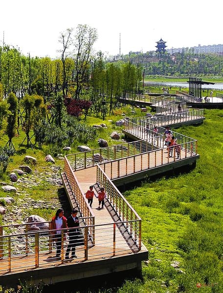 近年来,我市着力实现“水清、岸绿、路畅、惠民”的总体目标,使居民生活环境和幸福指数进一步提升。该区为了打造市区城南绿色生态长廊,不断加强练江河景观绿化建设,经过3年时间的治理,练江河主题公园于2019年1月建成并投入使用。该公园全长1.6公里,占地面积60公顷,水域面积20公顷,目前已经成为驻马店市产城融合,宜居、宜业的一张名片。