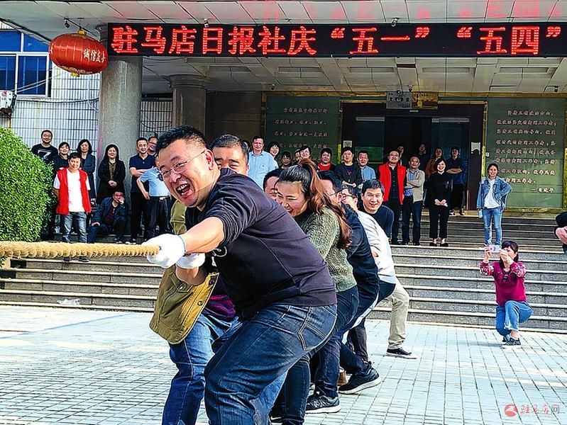 为丰富报社员工文化生活,4月24日,驻马店日报社举行庆“五一”劳动节和“五四”青年节拔河比赛活动,100多人参加。