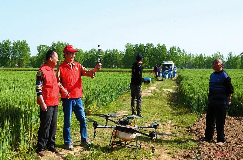 日前,市气象局组织志愿者深入帮扶村汝南县古塔街道办事处熊湾村,为村民送上服务材料,解答相关疑问,并协助古塔街道办事处的无人机专业技术人员喷洒农药,预防小麦赤霉病和小麦根腐病。