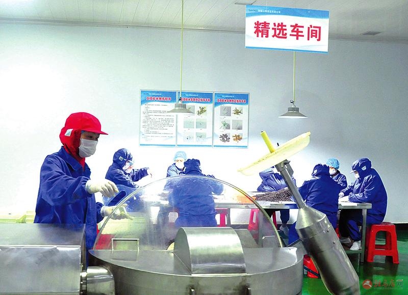 近年来,泌阳县持续实施农产品工厂化生产加工,大力推进产业转型升级。河南三明食品有限公司是以食用菌深加工和复合调味料为主的集研发、加工、贸易于一体的企业。图为生产车间现场。