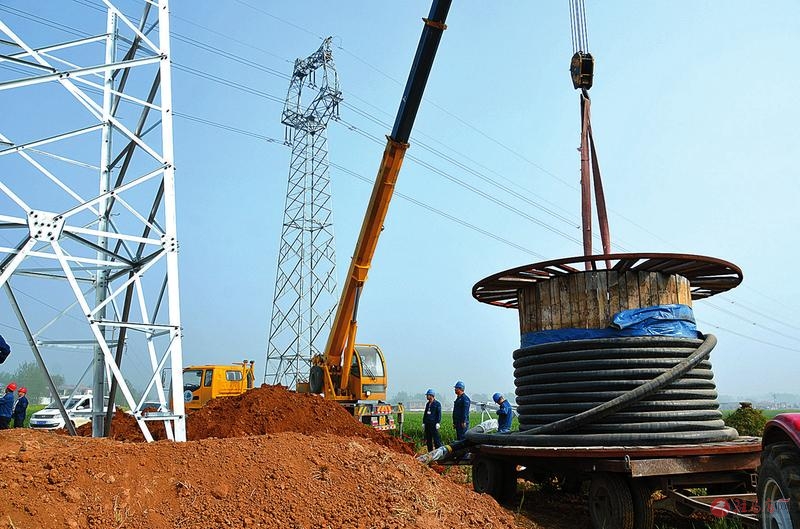 近日,上蔡县供电公司组织施工人员对上蔡县邵店镇110千伏变电站35千伏邵店至城南线路送出工程进行紧张施工,确保10月底完工。据了解,线路全长3.6千米,在该条线路7号杆塔至8号杆塔跨越110千伏房上线路路段组装铁塔,开挖电缆沟,埋设35千伏电缆。