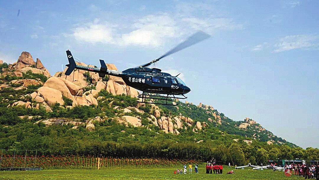 嵖岈山风景区五一假期新增了直升机空中巡游项目广受游客欢迎。通讯员 杨鹏威 摄