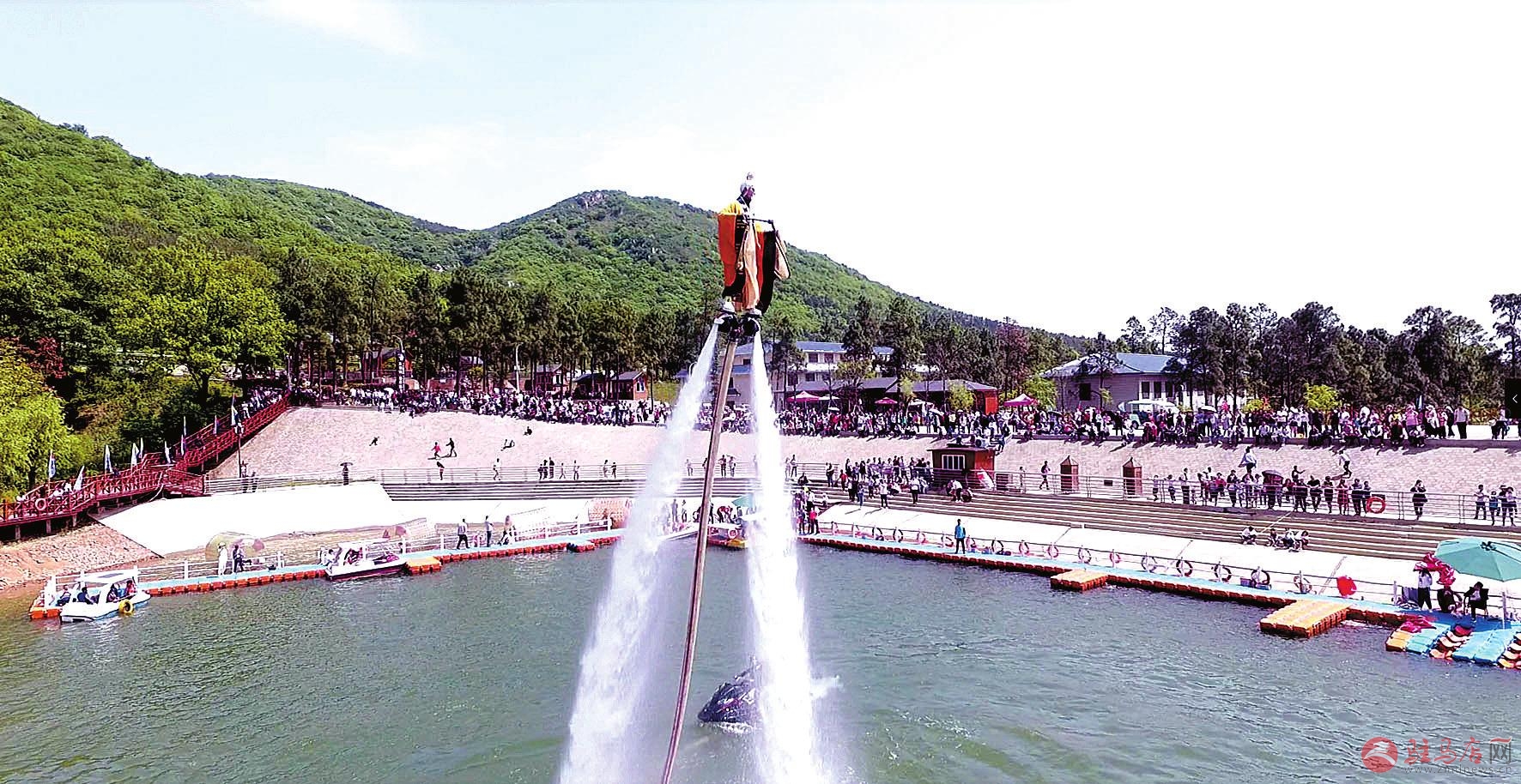老乐山风景区空中冲浪项目表演吸引了众多游客。 通讯员 韩泓毅 摄