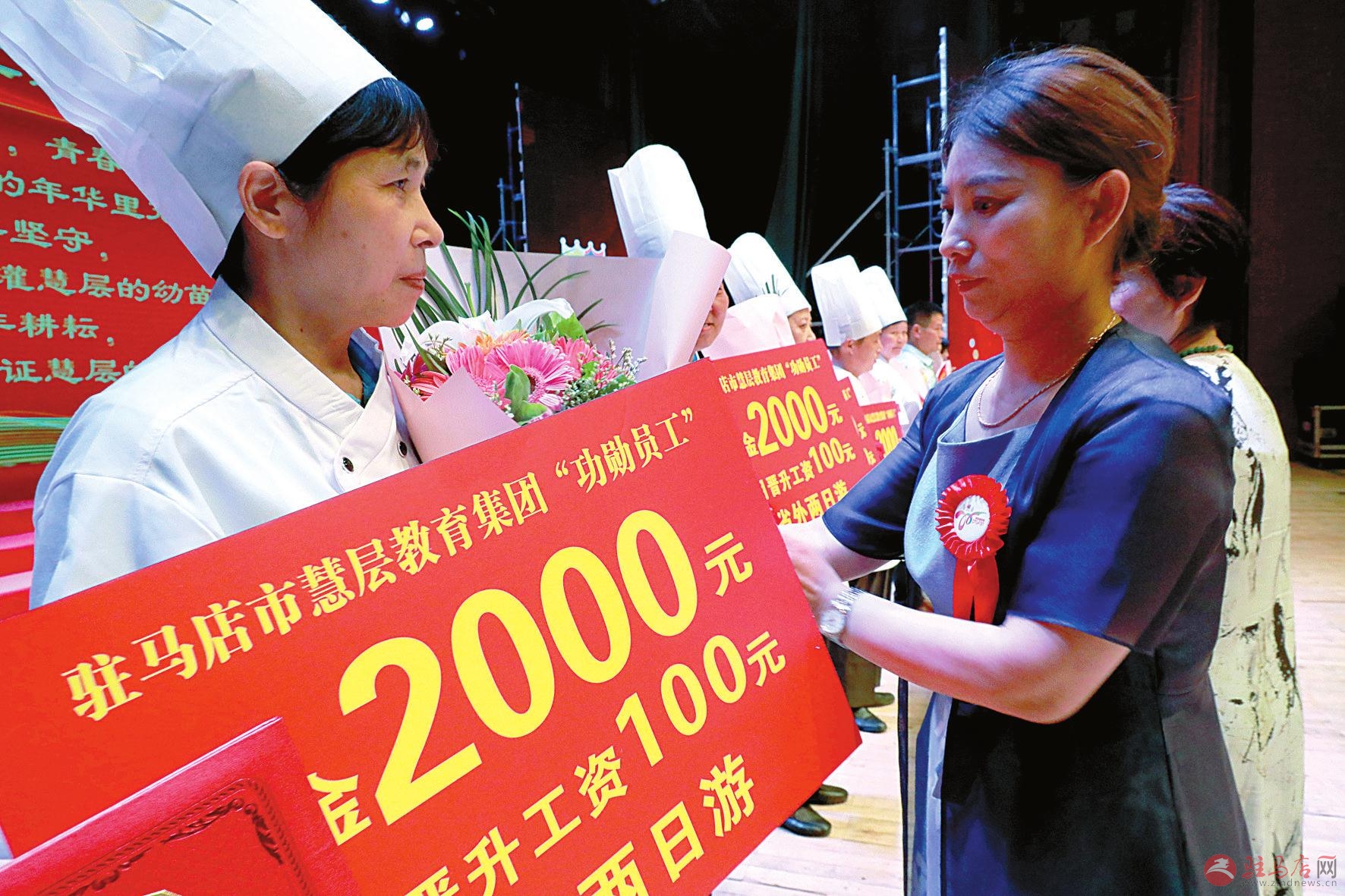 图①慧层教育集团负责人张慧层为员工颁奖。