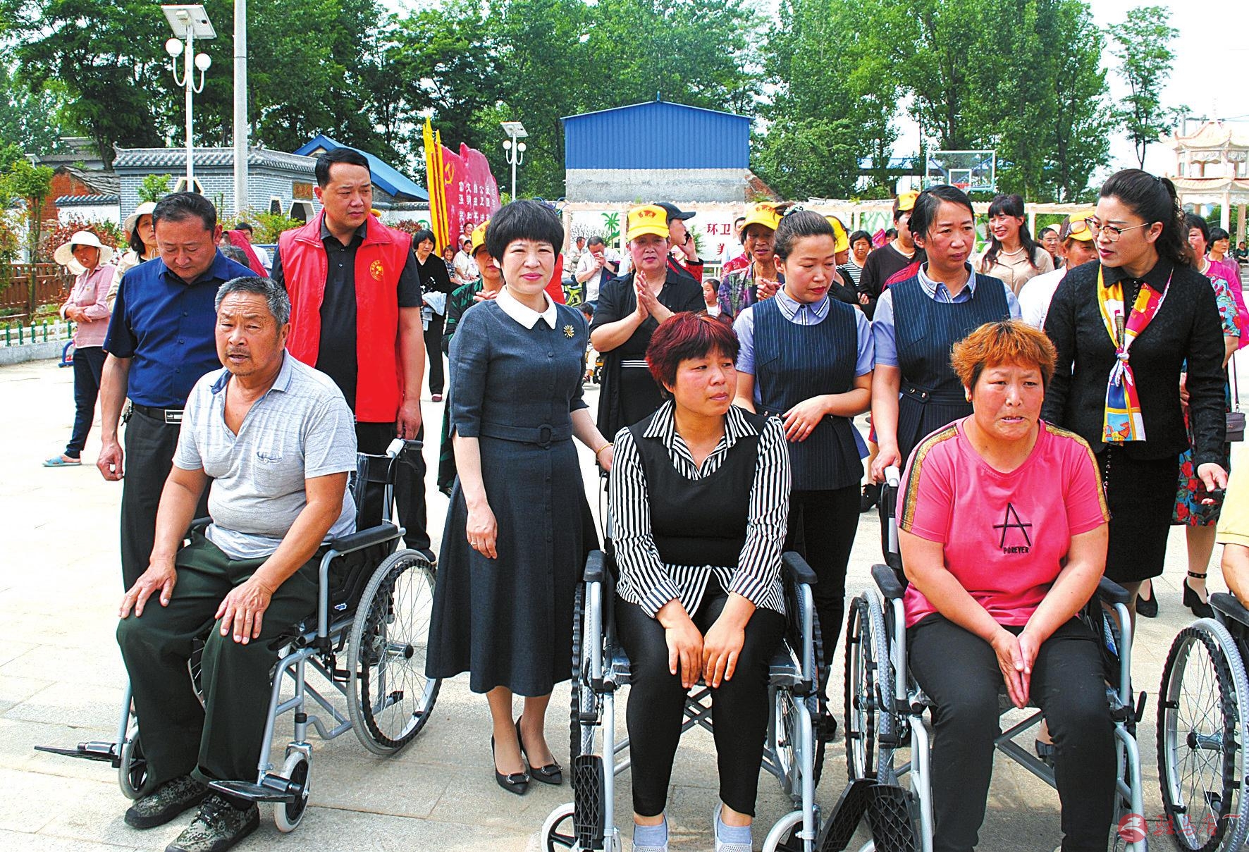 5月19日,在庆祝全国第29个助残日当天,泌阳县赊湾镇党委、镇政府带着对广大残疾人朋友及其家庭的殷切关怀,举办“自强脱贫,助残共享”助残日主题活动,为贫困残疾人发放轮椅、助听器等辅具。坐上新轮椅,戴上助听器,每个残疾人和家属的脸上都露出幸福的笑容。 记者 付建强 摄