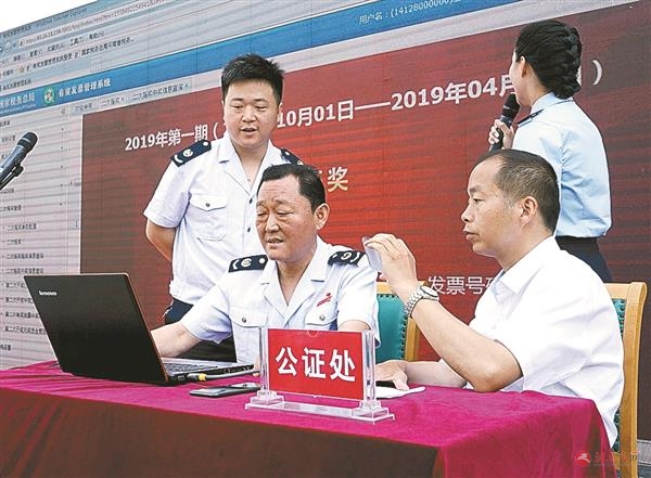 5月22日,由市税务局开展的我市2019年第一期有奖发票二次开奖活动在大商新玛特正式开启。在公证处的监督下,税务人员从待开奖的发票中现场随机抽取了41张中奖发票,包括一等奖5万元1张、二等奖1万元10张、三等奖5000元30张,奖金总额30万元。