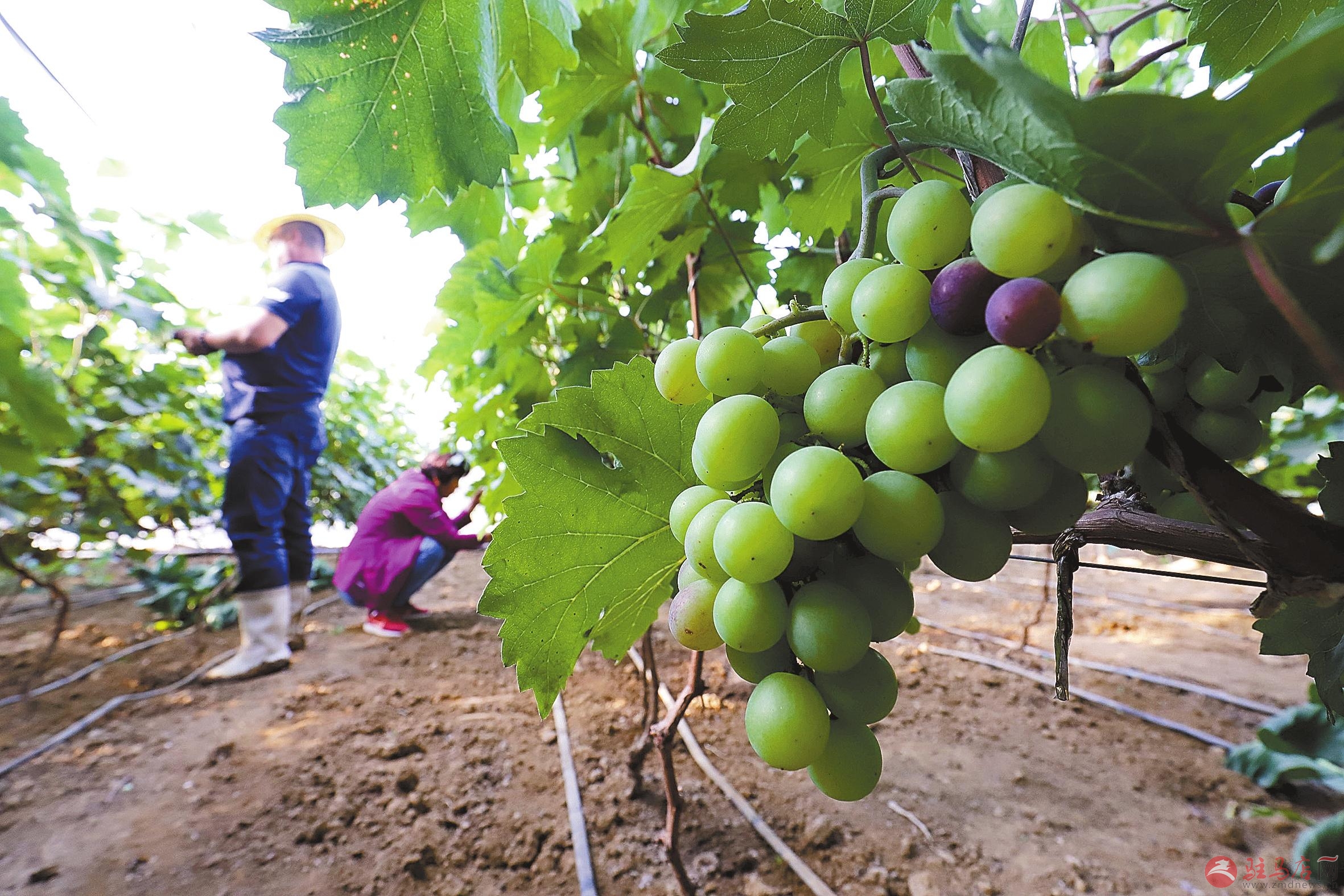 5月27日,河北唐山遵化市团瓢庄乡山里各庄村农民在葡萄园劳作。