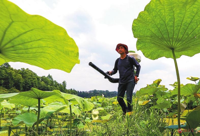 5月27日,村民在湖南省湘西土家族苗族自治州龙山县石羔街道泗坪村藕田劳作。
