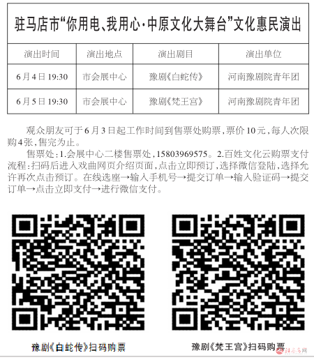 本报讯(记者王晓晶)5月28日,记者从市委宣传部获悉,河南豫剧院青年团演员、第29届中国戏剧梅花奖得主吴素真将于6月4日、5日在市会展中心为家乡人民倾情献艺豫剧《白蛇传》《梵王宫》。