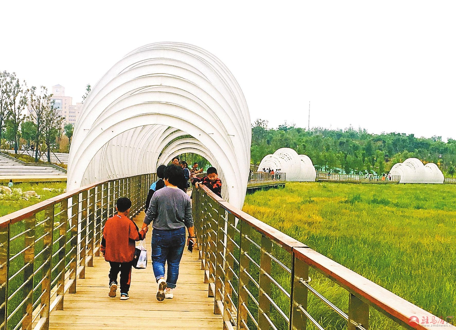 夏日5月,市区练江河主题公园(又名滨河公园)景色宜人、游人如织。走惊险刺激的吊索桥,漫步沿河道步行栈道,穿越“时空隧道”,登上观景亭公园美景一览无余,岸南岸北百花竞相开放、百草绿茵如毯,各种树木郁郁葱葱,河道碧水湾湾如银带飘过……特别是到了周末,练江河主题公园内怡人美景引来很多市民观赏游玩。图①蜿蜒的步行栈道。图②游人穿越“时光隧道”。图③垂钓好地方。记者邹冬梅摄