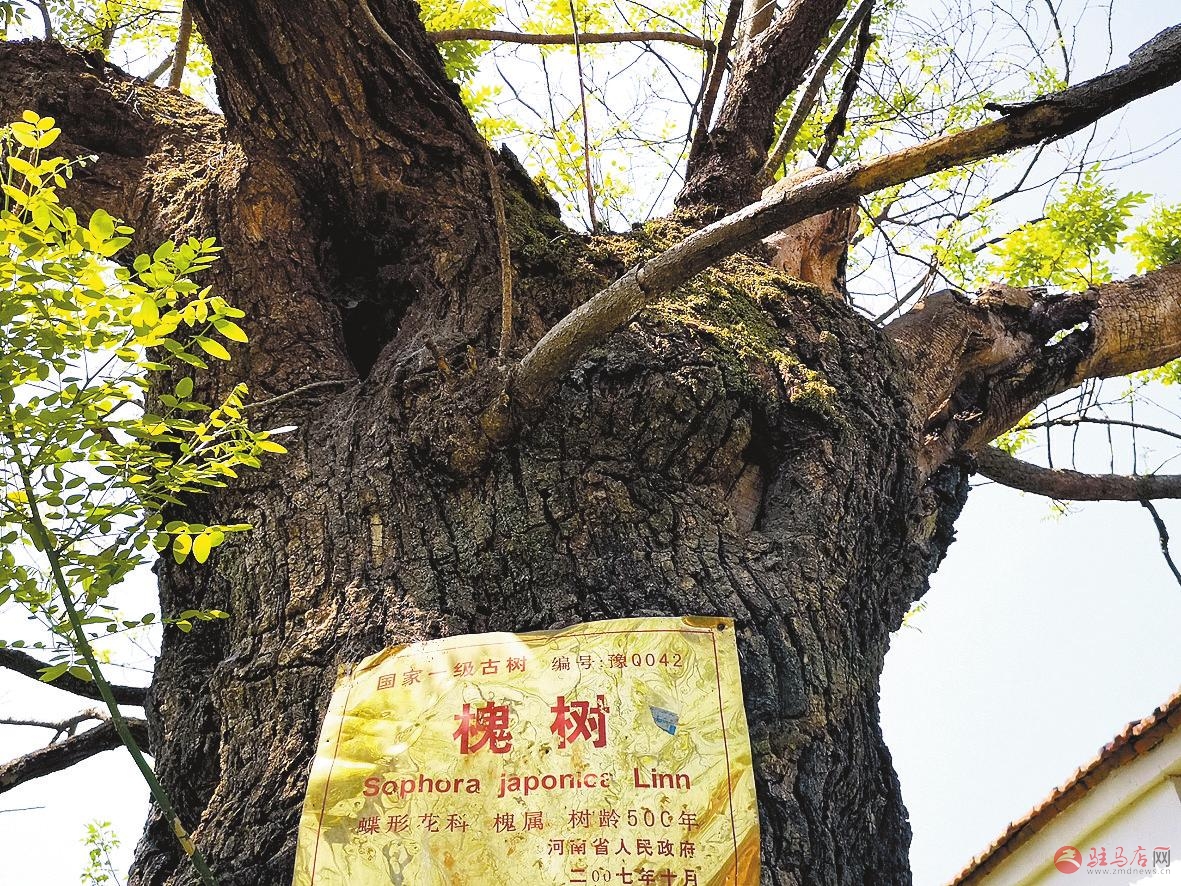 据闰骆驼介绍,具体这棵树是他闰家哪一代先人栽下的他也没有听说。村里老人说:“传言这树是由玉皇大帝挖土,王母娘娘播种,观音菩萨挑水培育而成。”村里人十分敬仰此树,一枝一叶都好好守护,以保护村子里的人平平安安。关于这棵树,在庄子里还流传着这样一件事:有一年,闰骆驼的邻居怪这棵树的庞枝压他的房子,就上去把这个枝子砍了,没过多久家里便发生了不测。从此,村里人更加信奉古树。2007年,这棵槐树被河南省人民政府列为“国家一级古树”挂牌进行保护。今年,傅寨乡政府在古槐树四周设置了防护栏。