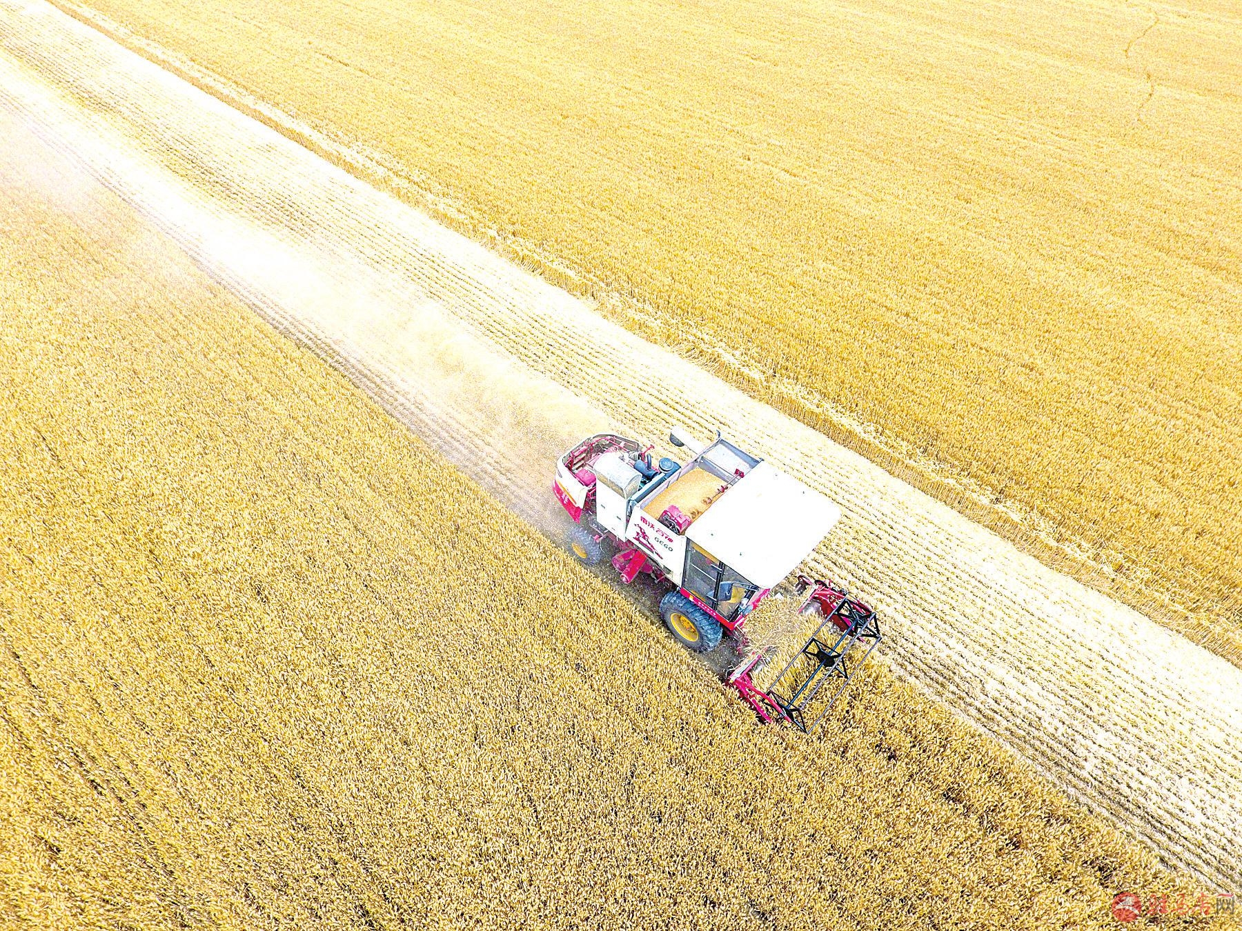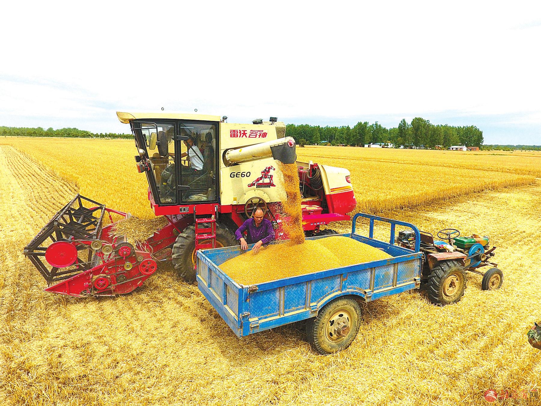 5月28日,正阳县熊寨镇王大塘村村民徐根五正在机收小麦,他今年种植15亩小麦,每亩产量在500公斤以上。据悉,该县抓住当前有利时机,抓紧抢收,广泛宣传发动,加强农业机械合理调度,做好小麦机收会战工作,迅速掀起麦收工作热潮,确保小麦颗粒归仓。同时,严控割茬高度,大力推广秸秆还田技术,努力维护良好的空气质量,从源头上禁止秸秆焚烧事件发生,全力做好三夏生产和秸秆禁烧工作。截至发稿,该县已收割48.25万亩。3图①小麦机收场景。图②金黄的麦子从机器里流淌下来。