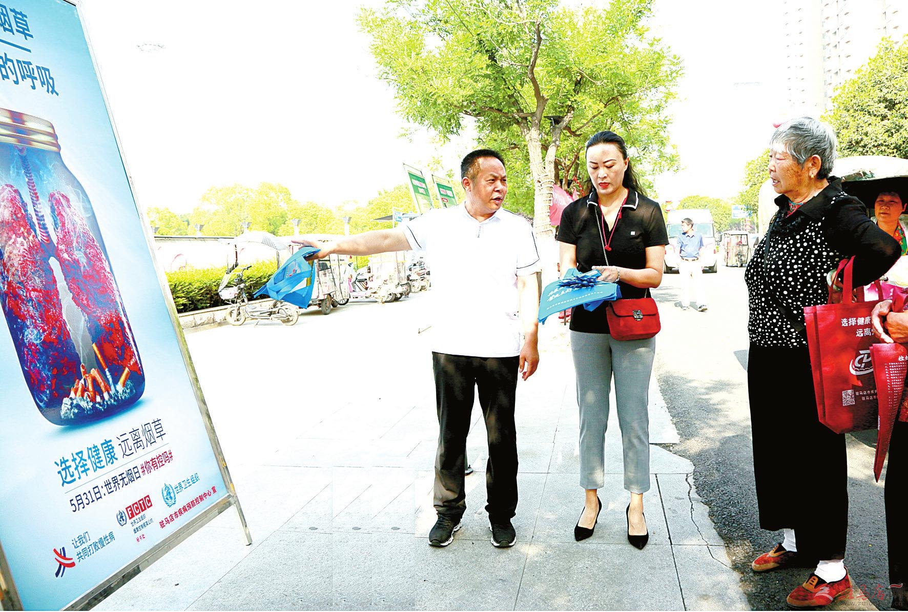 2019年5月31日是第32个世界无烟日。为加大控烟宣传和健康教育工作力度,营造可持续无烟环境,近日,市爱卫会组织相关医疗单位及各街道办事处爱卫办在市区世纪广场举行大型集中宣传活动,向广大群众普及控烟知识。