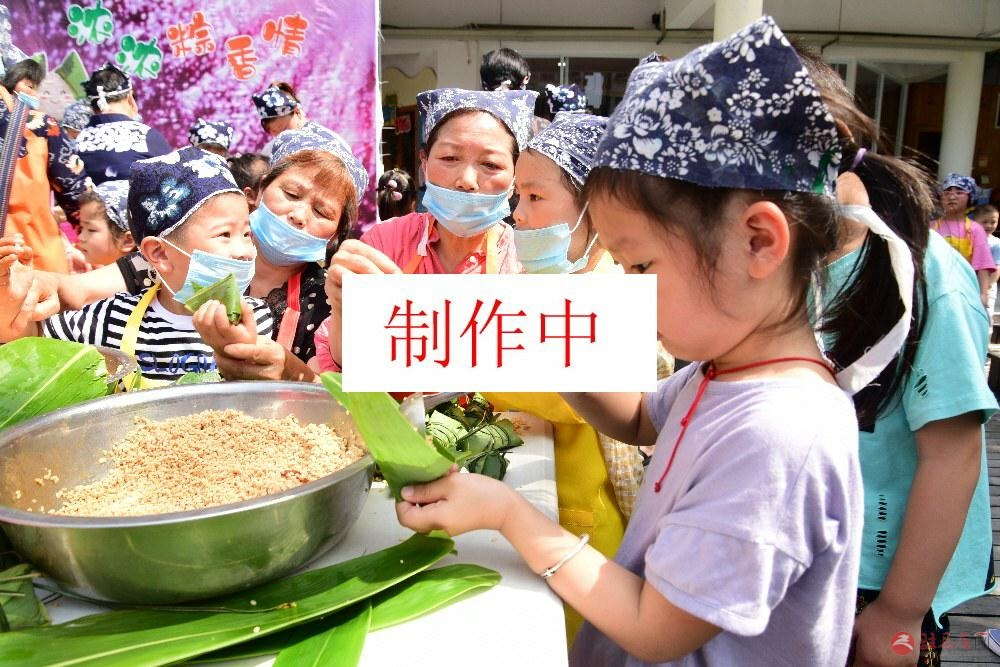 ▼6月5日,在浙江省建德市一幼儿园,小朋友在老师指导下体验包粽子。