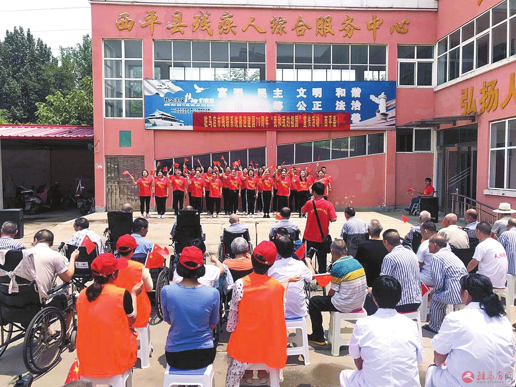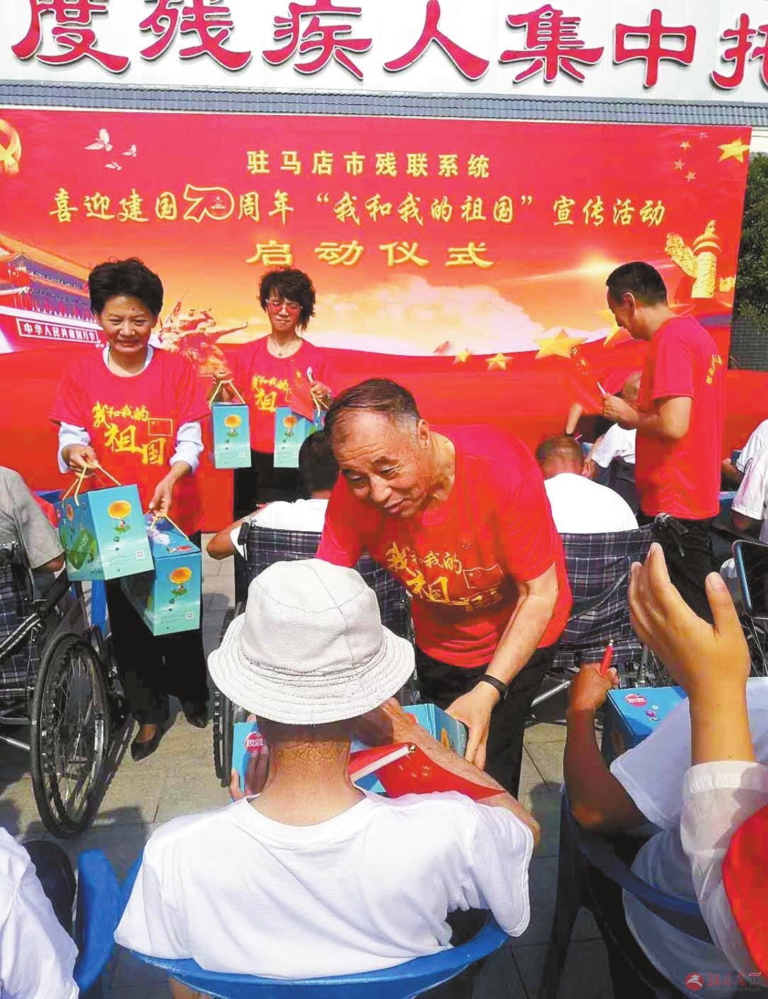 “我和我的祖国,一刻也不能分割,无论我走到哪里,都流出一首赞歌……”6月7日~8日,伴随着熟悉悦耳的《我和我的祖国》歌曲旋律,驻马店市残联系统为喜迎新中国成立70周年开展“我和我的祖国”主题宣传活动,分别唱响汝南县城重度残疾人集中托养中心、上蔡县大路李乡栗庄重度残疾人集中托养中心、西平县城重度残疾人集中托养中心、遂平县玉山镇重度残疾人集中托养中心等地。