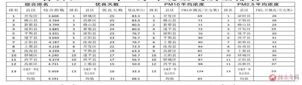 各县区2019年5月环境空气质量排名