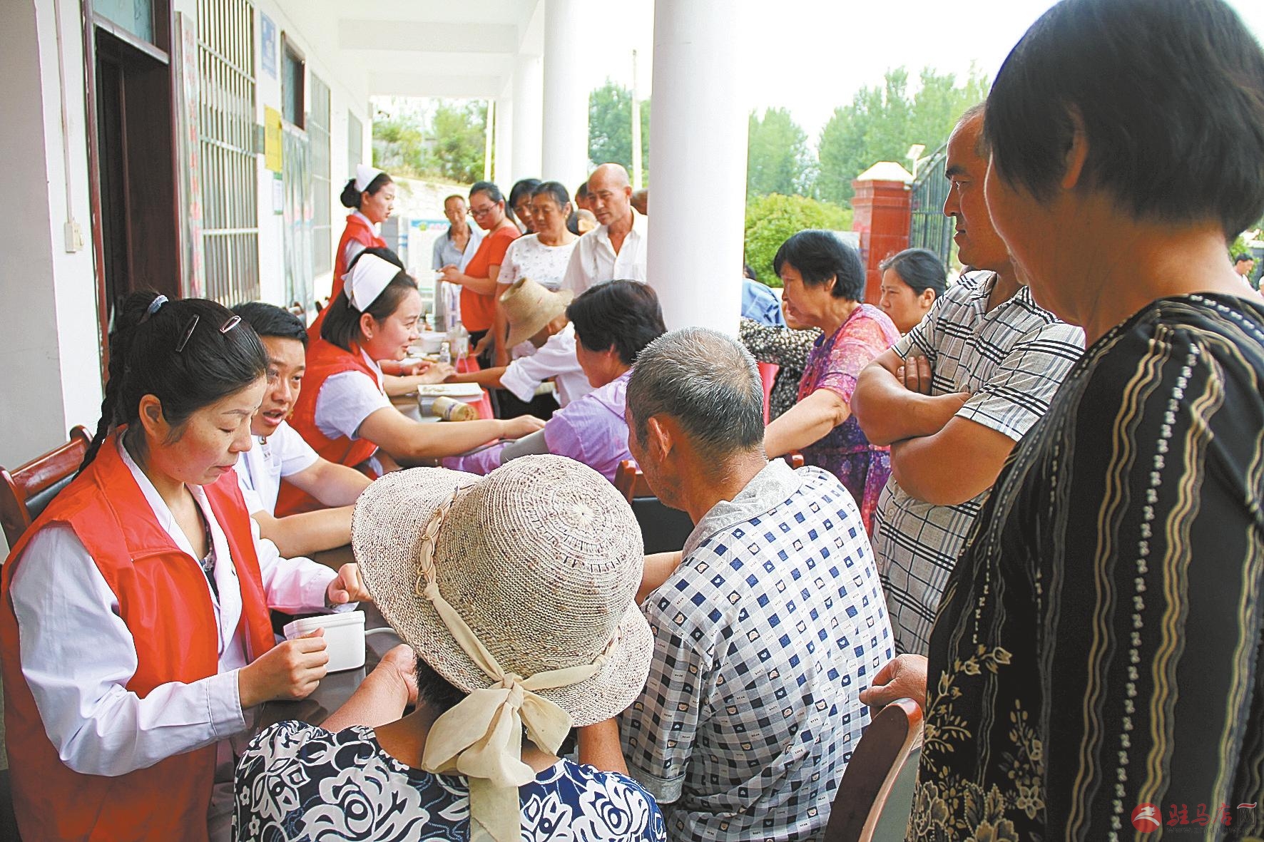 近日,由市中医院9名医疗工作者组成的义诊小分队开赴泌阳县高邑镇谭园村,开展送医下乡活动,为当地村民免费送诊送药,让农民群众有了更多的幸福感、获得感。记者许伟摄