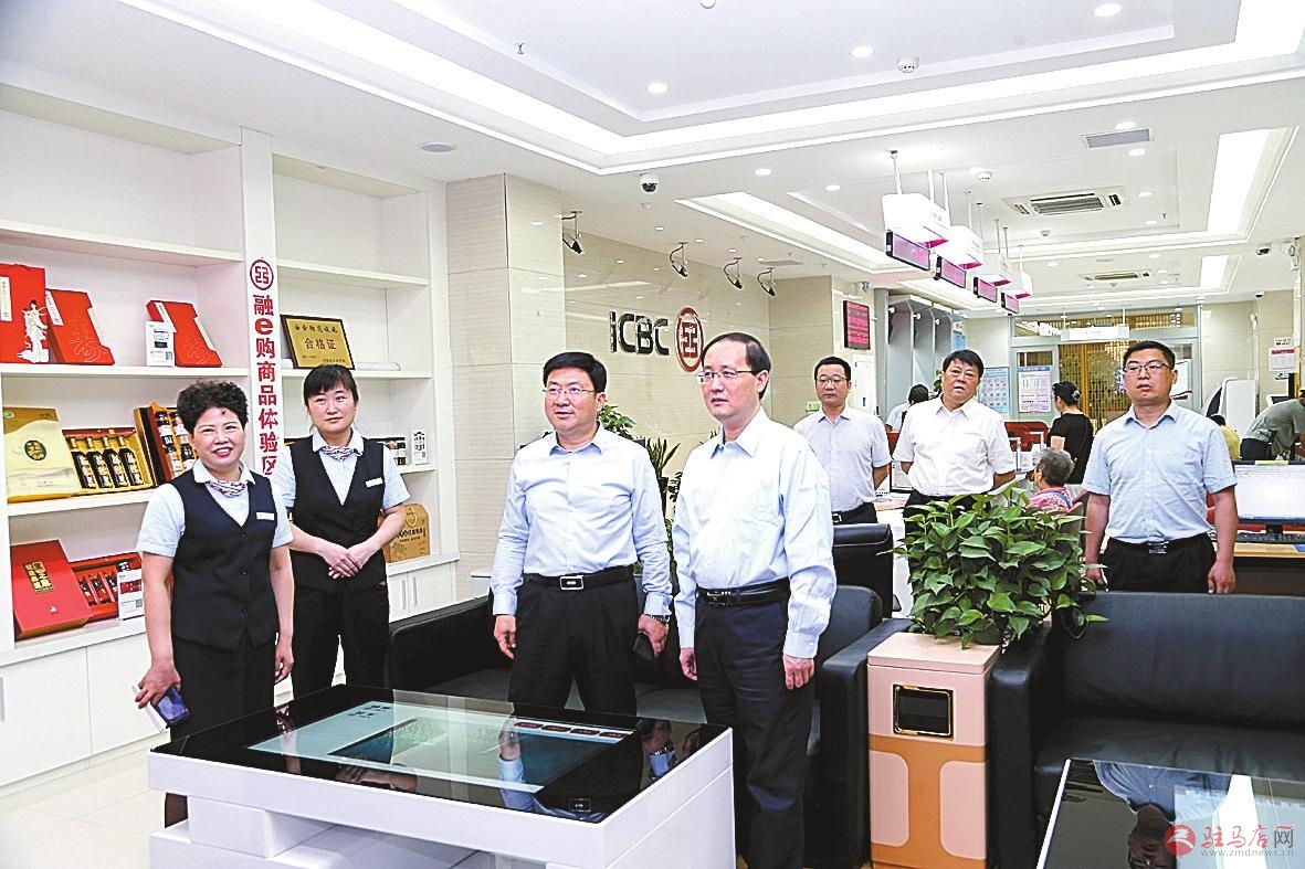 近日,工行河南省分行党委委员、副行长韩强(前排右一)一行3人深入工行新蔡支行、工行汝南支行和工行驻马店分行营业部,开展“坚持强化党建引领、建设客户满意银行”主题调研活动。通讯员 韩旭 摄