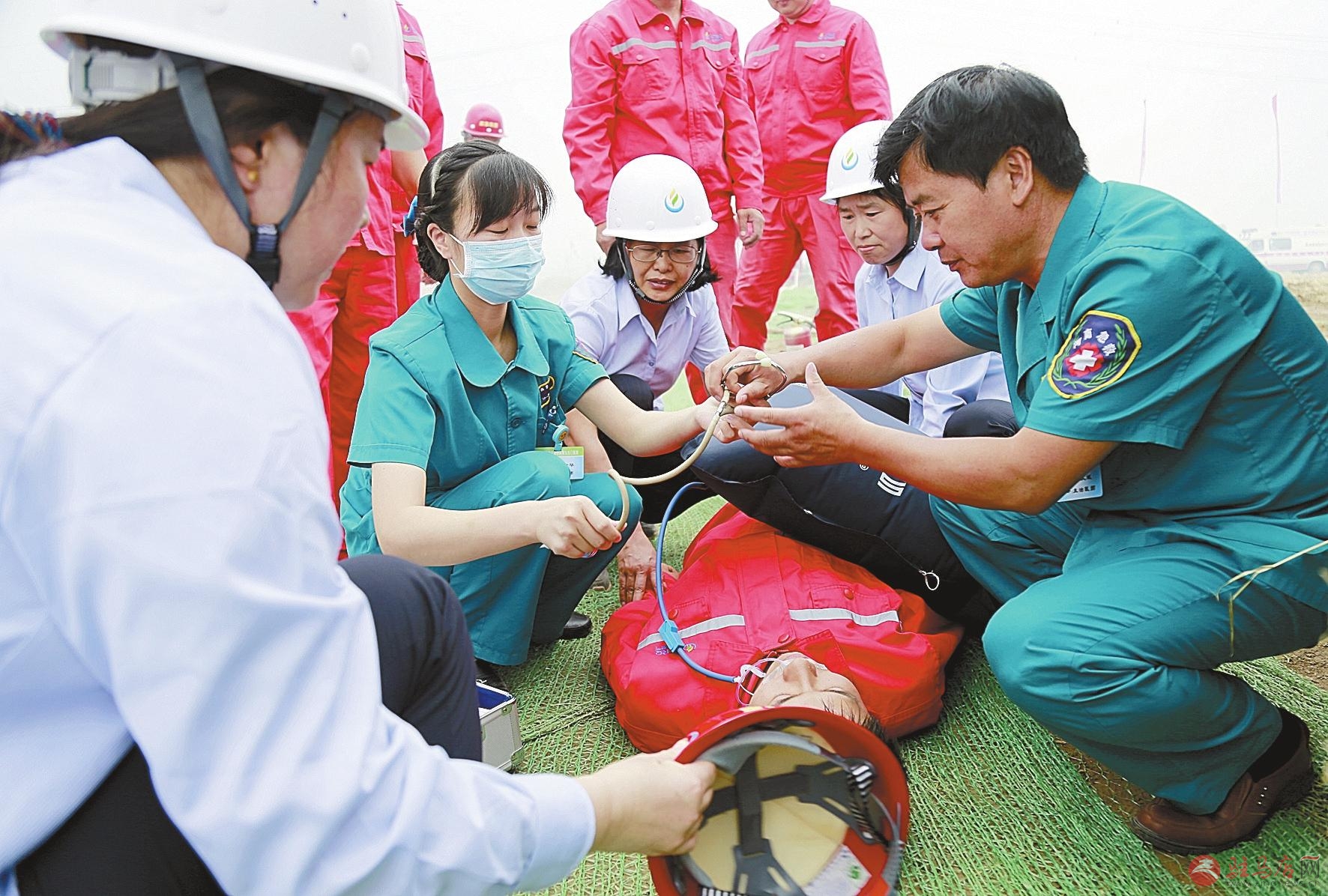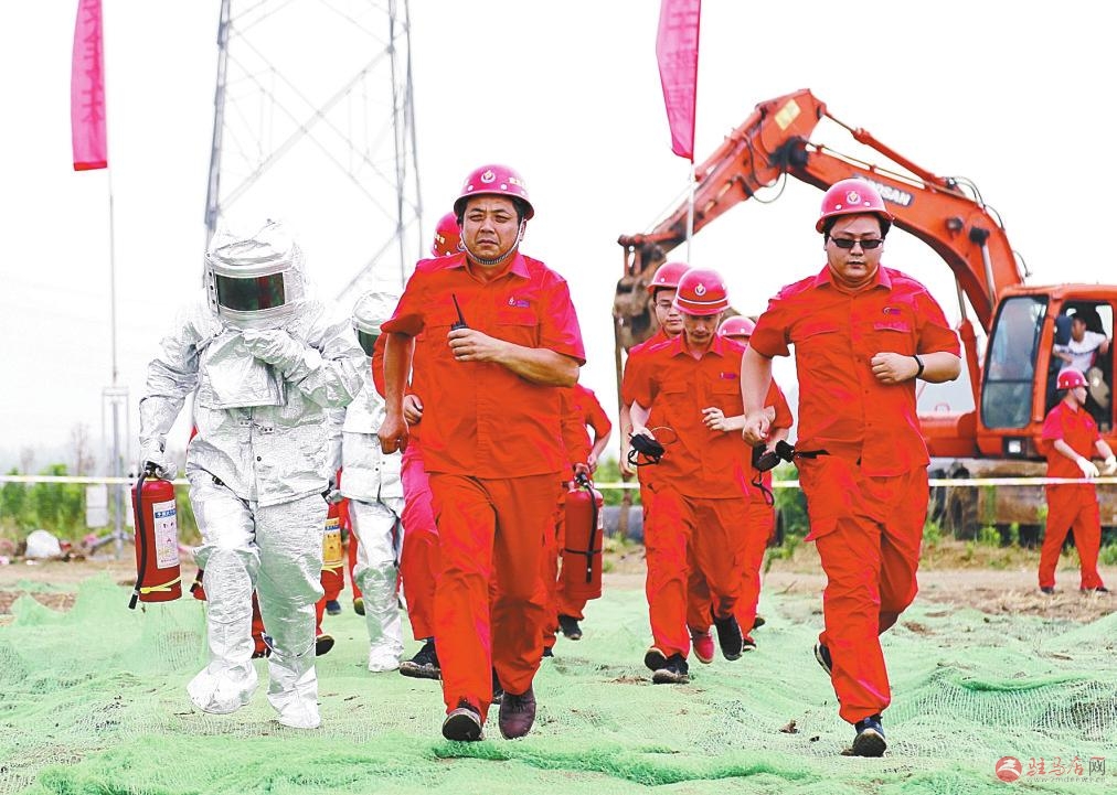 “位于高新区蔡州大道与汝河大道交叉口北800米处蓝天燃气豫南支线天然气高压管道遭第三方施工单位野蛮施工破坏,发生天然气泄漏着火,情况十分危急……”6月18日,由市发改委和高新区管委会联合主办、河南蓝天燃气股份有限公司承办的天然气长输管道突发事故应急演练拉开帷幕。