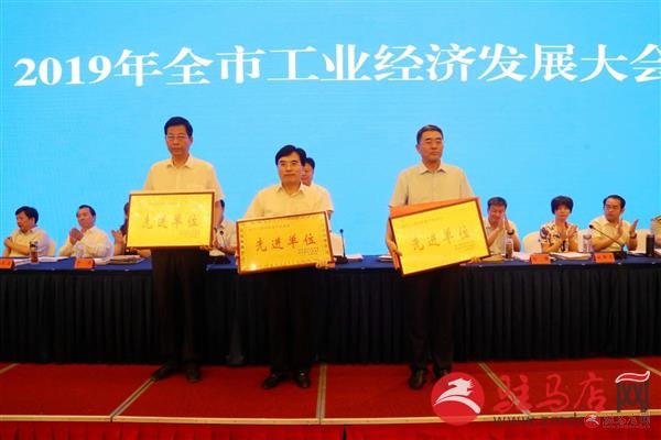 会议对产业强市先进县区、先进企业代表进行了表彰颁奖。驿城区、平舆县、天方药业、鹏辉电源负责人作典型发言。