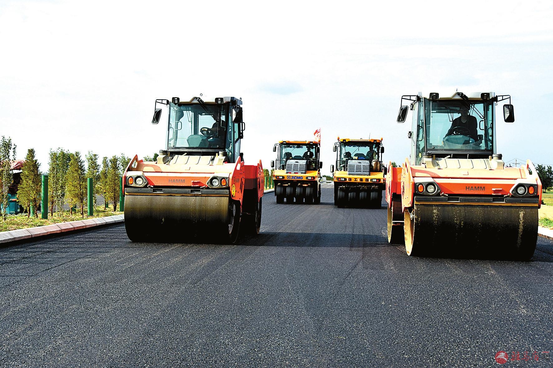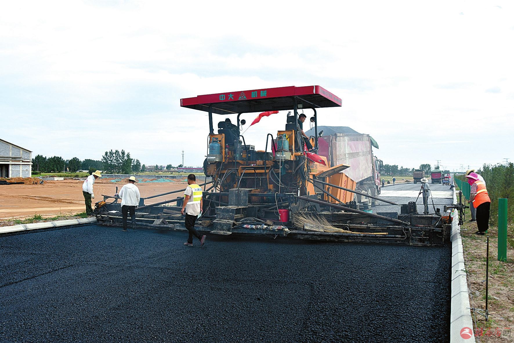记者在施工现场看到,在施工人员的指挥下,一辆运输沥青的车辆缓缓向前移,车厢缓缓抬起,冒着热气的沥青随即翻滚而下;摊铺机紧跟其后,把沥青平整地摊铺到路面上。在刚铺好的沥青路面上,压路机来回穿梭,一遍又一遍碾压着路面。