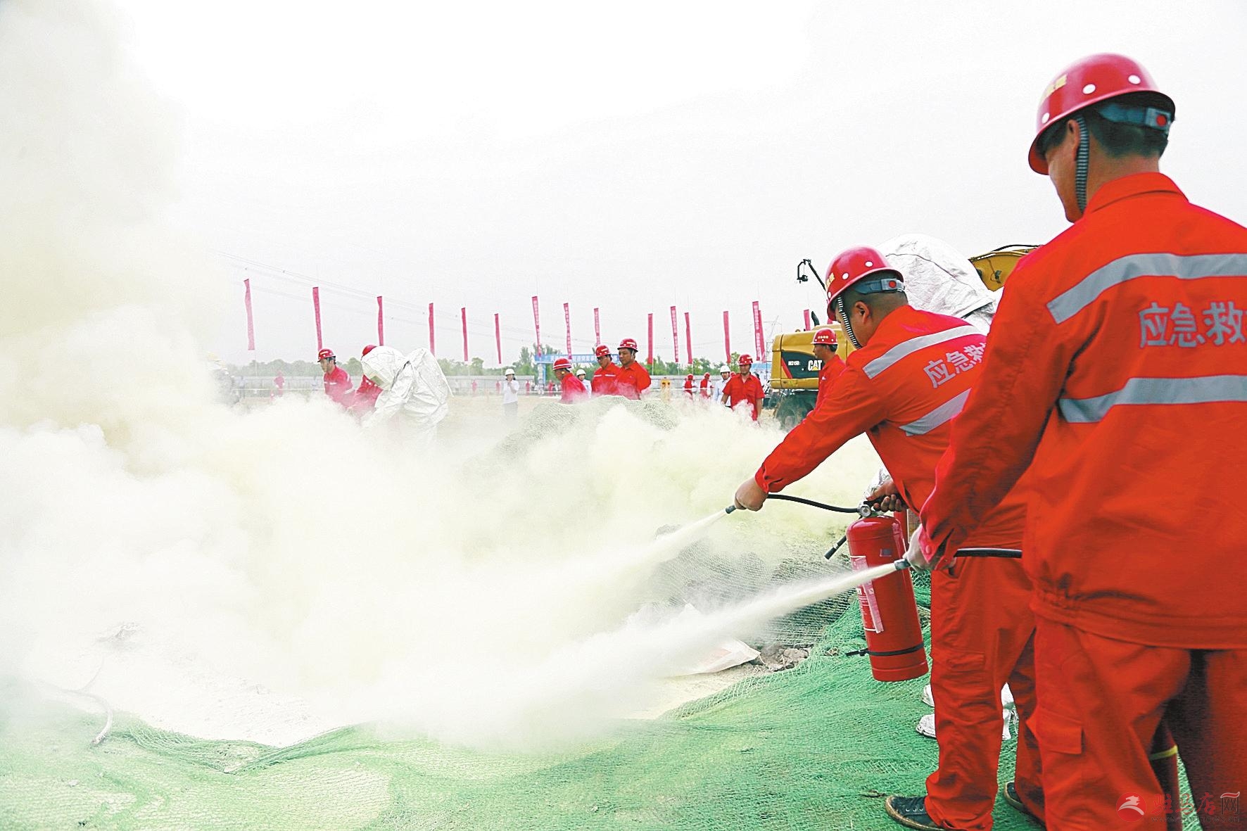 “位于高新区蔡州大道与汝河大道交叉口北800米处蓝天燃气豫南支线天然气高压管道遭第三方施工单位野蛮施工破坏,发生天然气泄漏着火,情况十分危急……”6月18日,我市开展天然气长输管道突发事故应急演练。