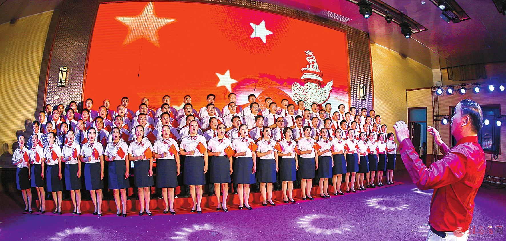 正阳县纪委监察委全体同志合唱《歌唱祖国》。