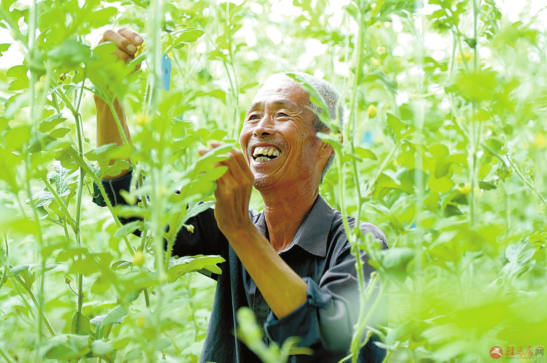 6月26日,新蔡县砖店镇大宋庄村民在大棚内为蔬菜疏花。近年来,砖店镇依托未来能源,打造了农业种植产业孵化基地,采取“公司+农户+基地”的方式,给予资金、技术扶持,带动贫困户发展绿色生态种植,目前已带动周边1000户贫困户脱贫。