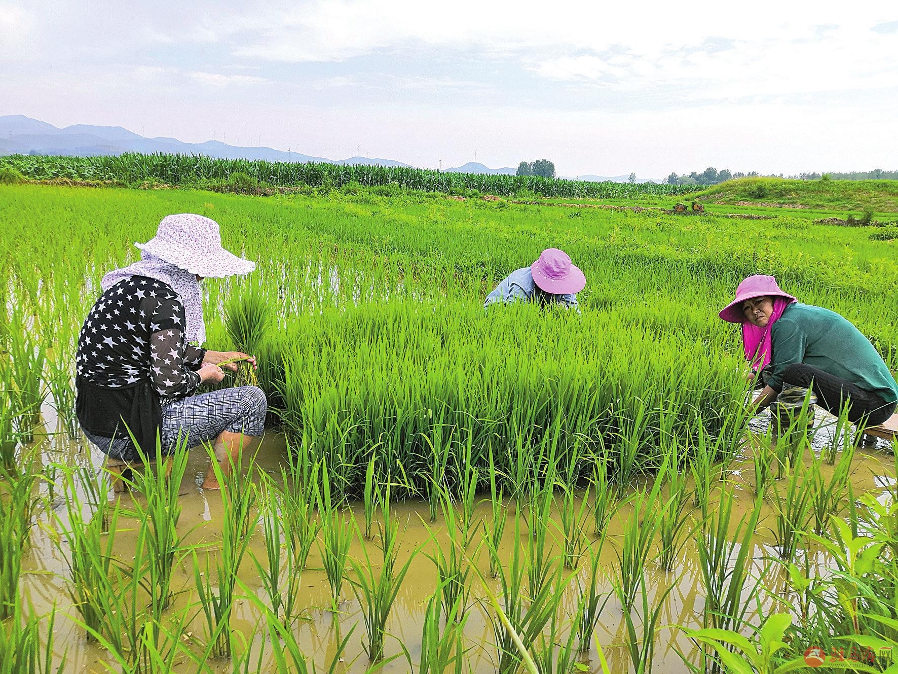 近日,记者在确山县竹沟镇后里河村看到,村民正在移栽秧苗。“三山三水三分田”的确山县,近年来因地制宜,做活农业,促农增收,助力脱贫攻坚扎实开展。