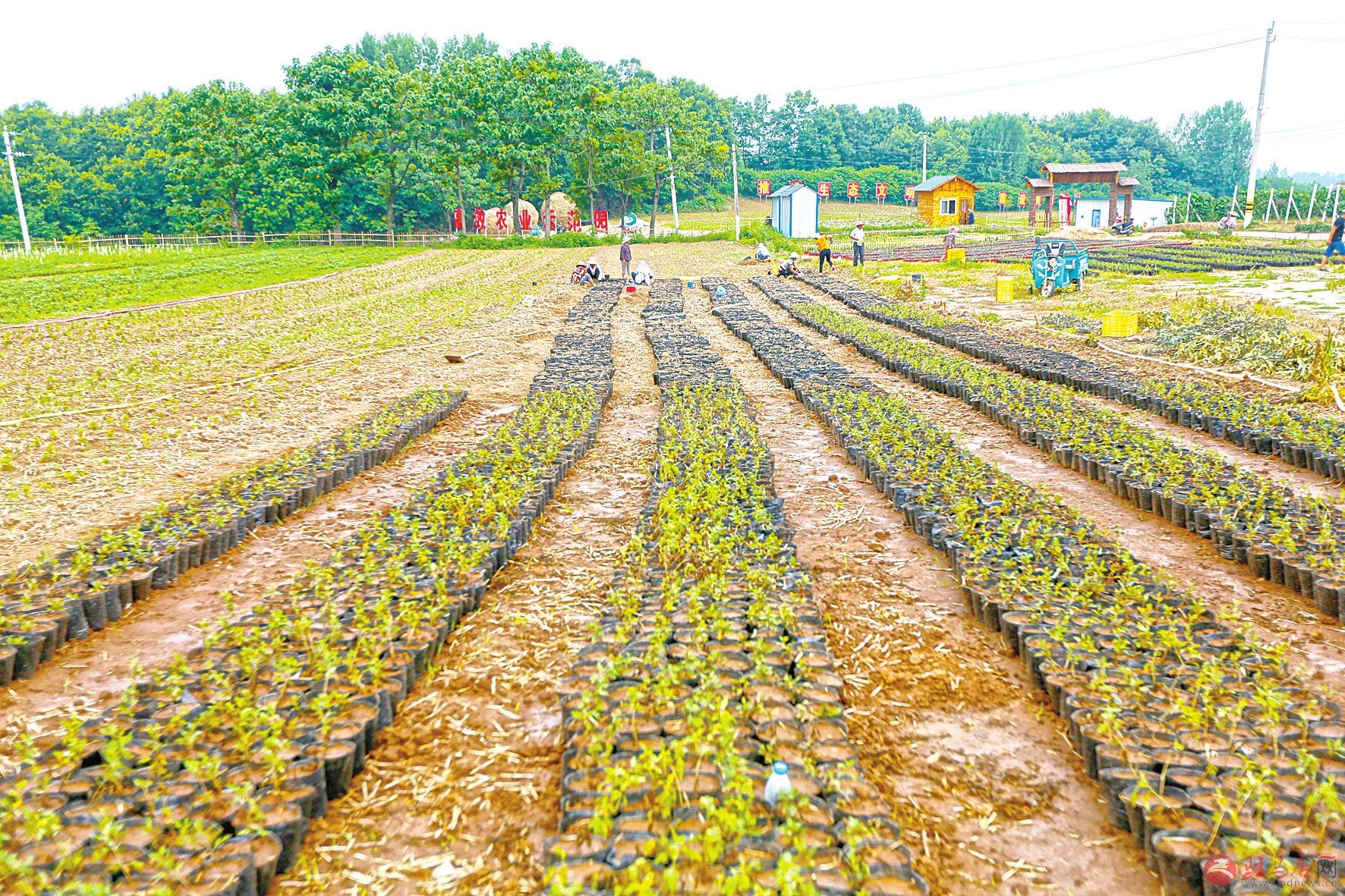 近日,村民在驿城区蚁蜂镇鲁湾小镇田园综合体培育花草。
