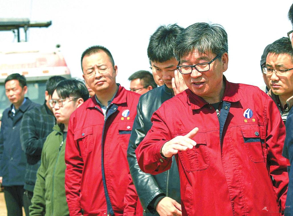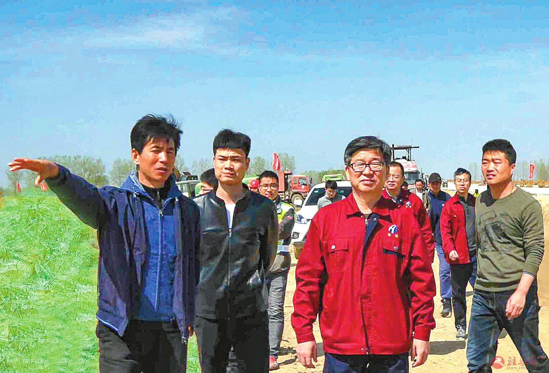淮信公司董事长李小重(右二)在息邢高速公路TJ3-1工区检查施工进度情况。
