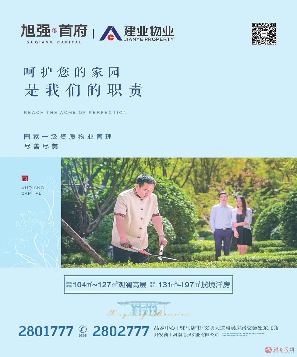 幸福是每天归家时的温暖笑脸,更是365个日夜的忠诚守候。旭强·首府携手国家一级资质的建业物业,用品质守护千万家的幸福时光,坚持真心的服务态度,做最美丽的守护者,让业主居住安心、舒心。
