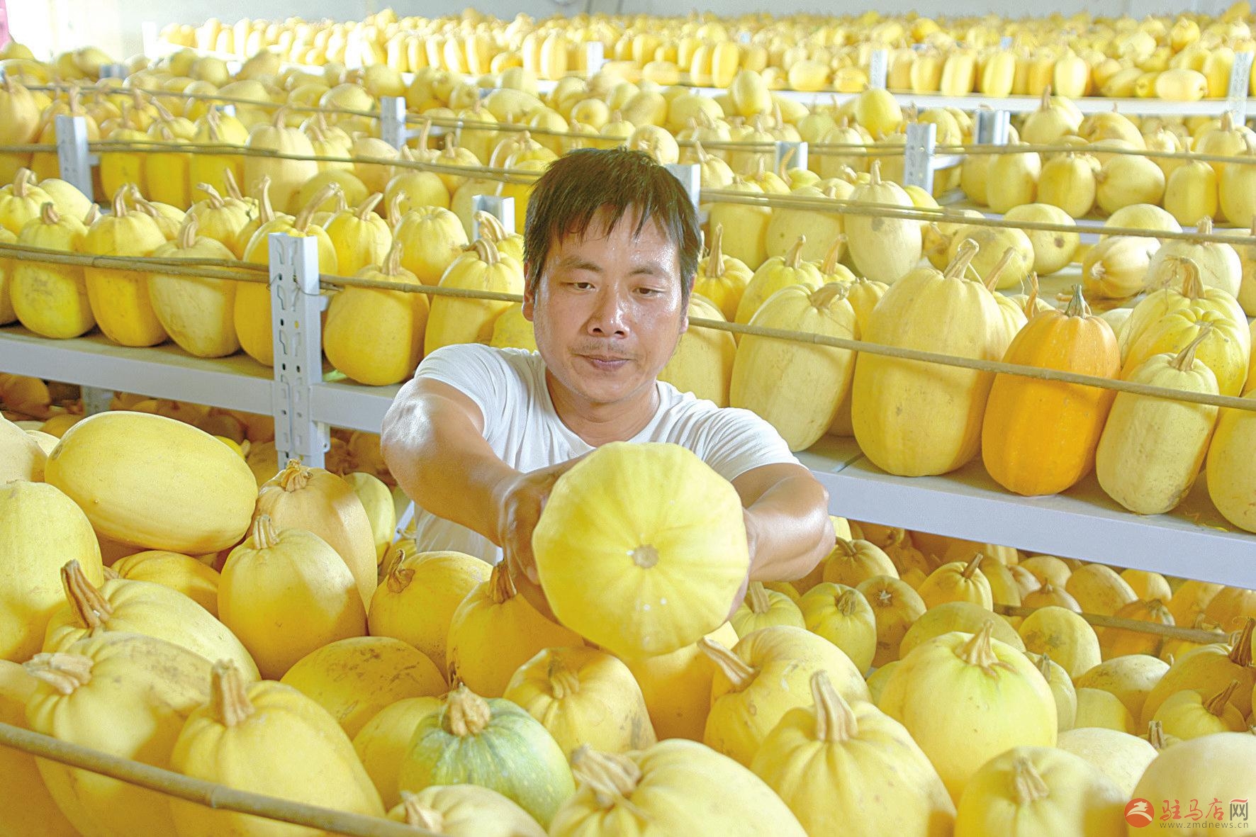 7月19日,正阳县汝南埠镇村民孙鹏飞在晾储金丝瓜。金丝瓜俗称搅瓜,是当地的稀有瓜菜品种。近年来,正阳县立足本地农业资源、产业优势、产业基础和市场条件,打出了产业扶贫牌,鼓励各村充分发挥自身资源,采取“支部+合作社+基地+销售”的模式,形成了“一乡一业、一村一品”为主、多业互补、多点支撑的富民产业增收体系,走各具特色的致富之路,助力乡村振兴。