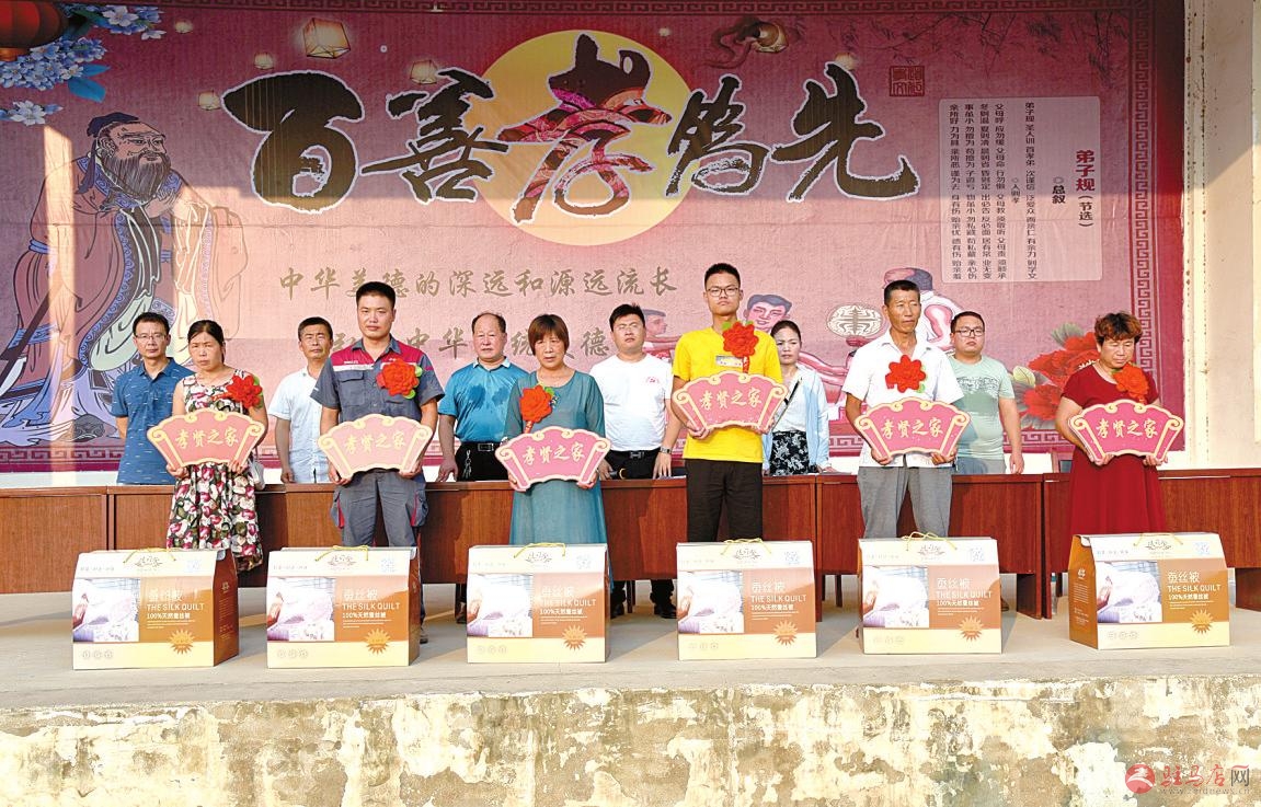此次表彰大会,该镇对评选出的33个“孝贤之家”进行表彰。7名获评“孝心好少年”称号的中小学生和26名“孝贤之家”的成年人代表,分别上台领取了“孝贤之家”光荣牌、荣誉证书和相关奖品。