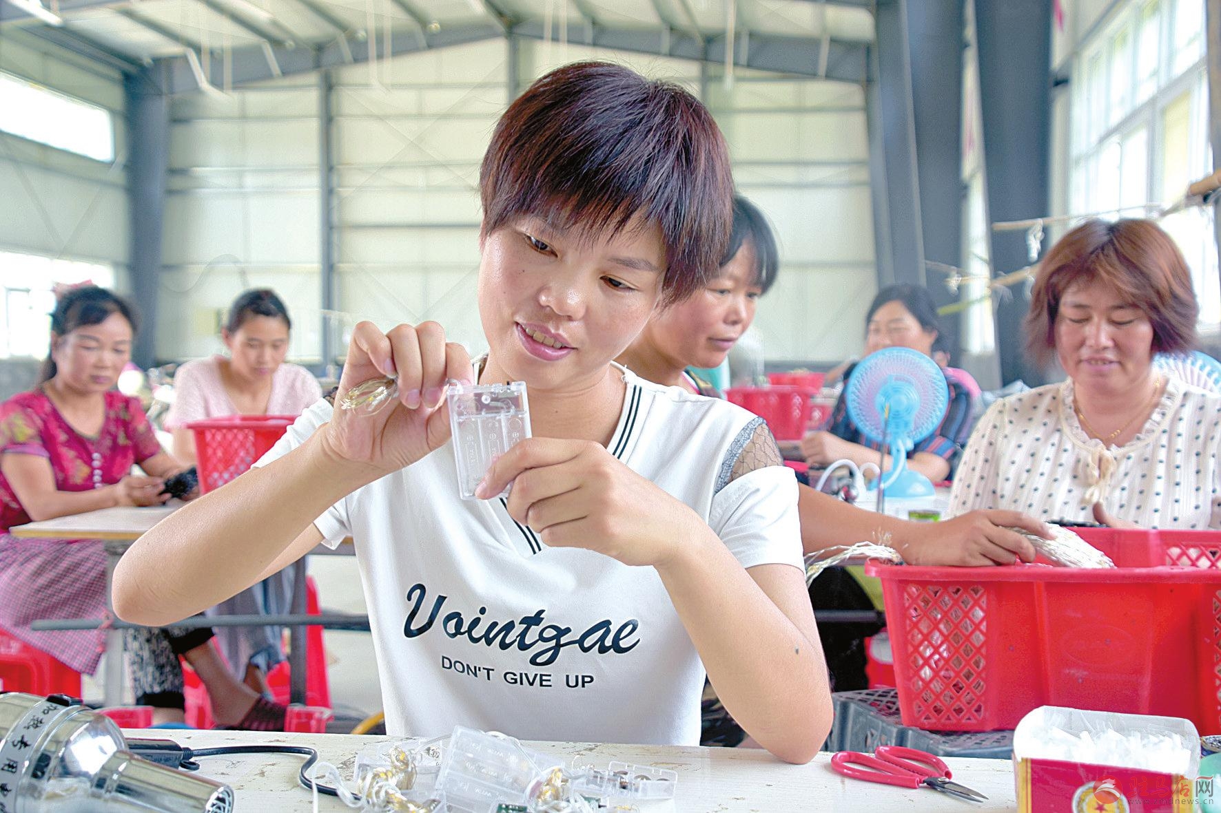 7月22日,正阳县彭桥乡大刘村扶贫车间里,留守妇女正在忙碌着。