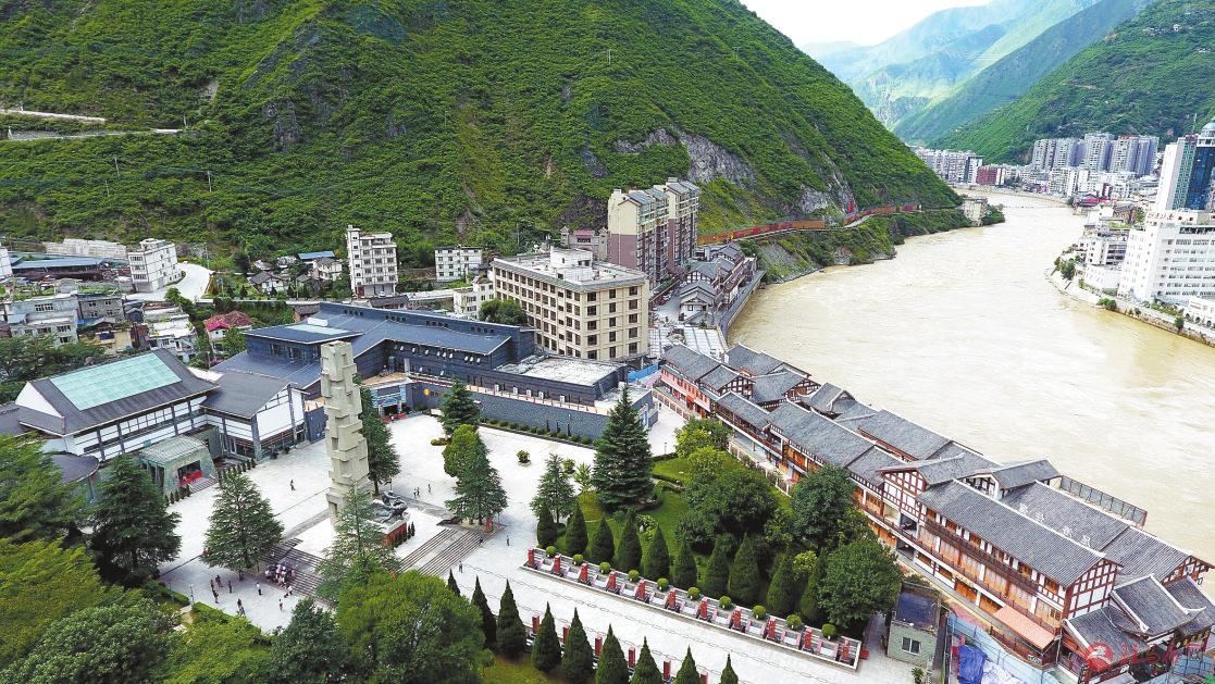 图②坐落在大渡河畔的红军飞夺泸定桥纪念馆和纪念碑。新华社发