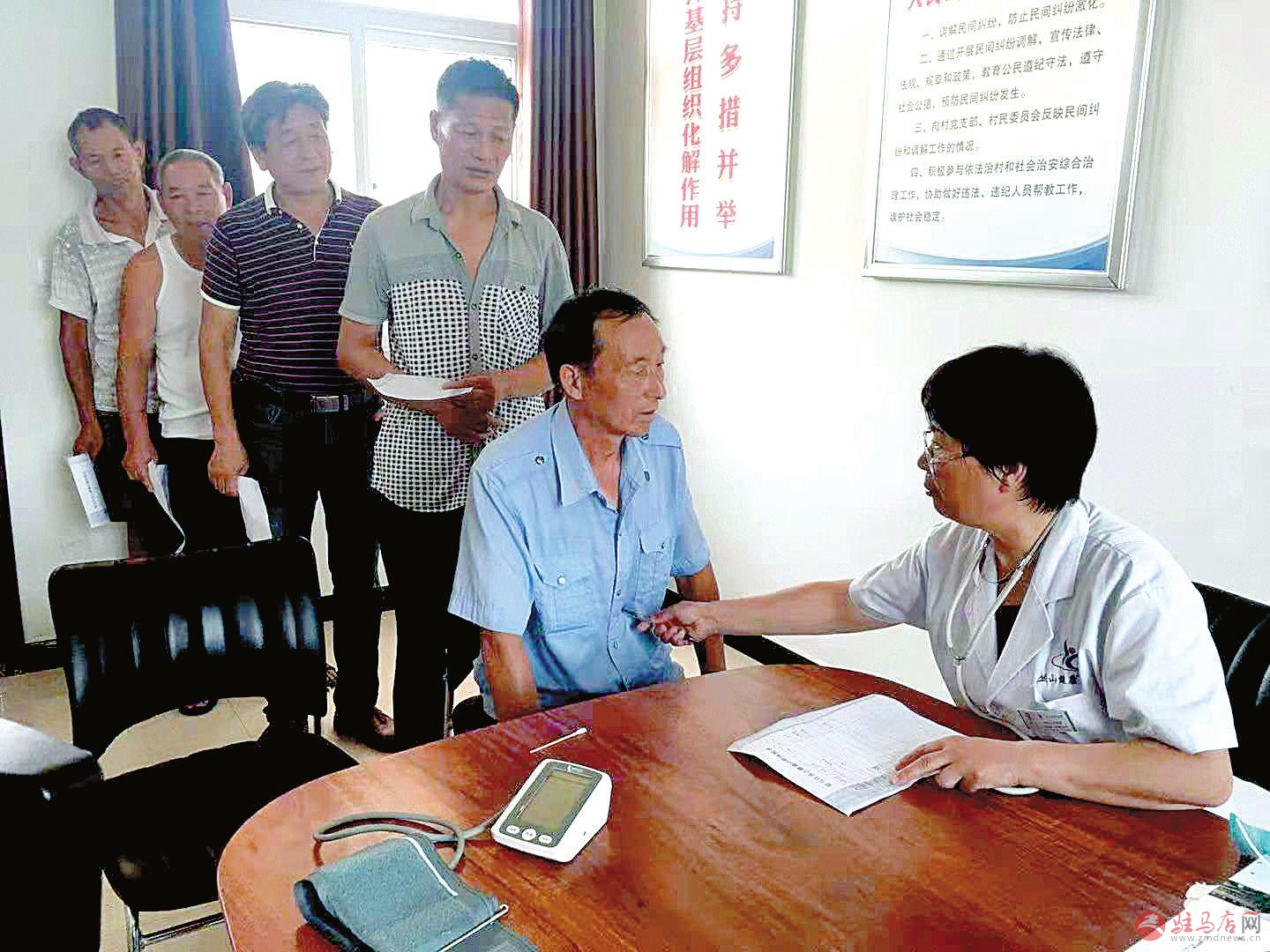 “八一”建军节前夕,市农机局组织驻马店市丛山体检中心的医生到西平县盆尧镇于营村,为46户贫困户、退伍军人、教师进行免费体检和义诊,用上门送健康的方式,将精准扶贫落到实处。当天,市农机局联合市退役军人事务局对原农机公司两名生活困难的退役军人进行了帮扶慰问,为他们争取了每人3000元的补助金,鼓励他们保持积极乐观的心态、坚定美好生活的信念,在社会各界的帮助下渡过难关。通讯员 禹力 摄