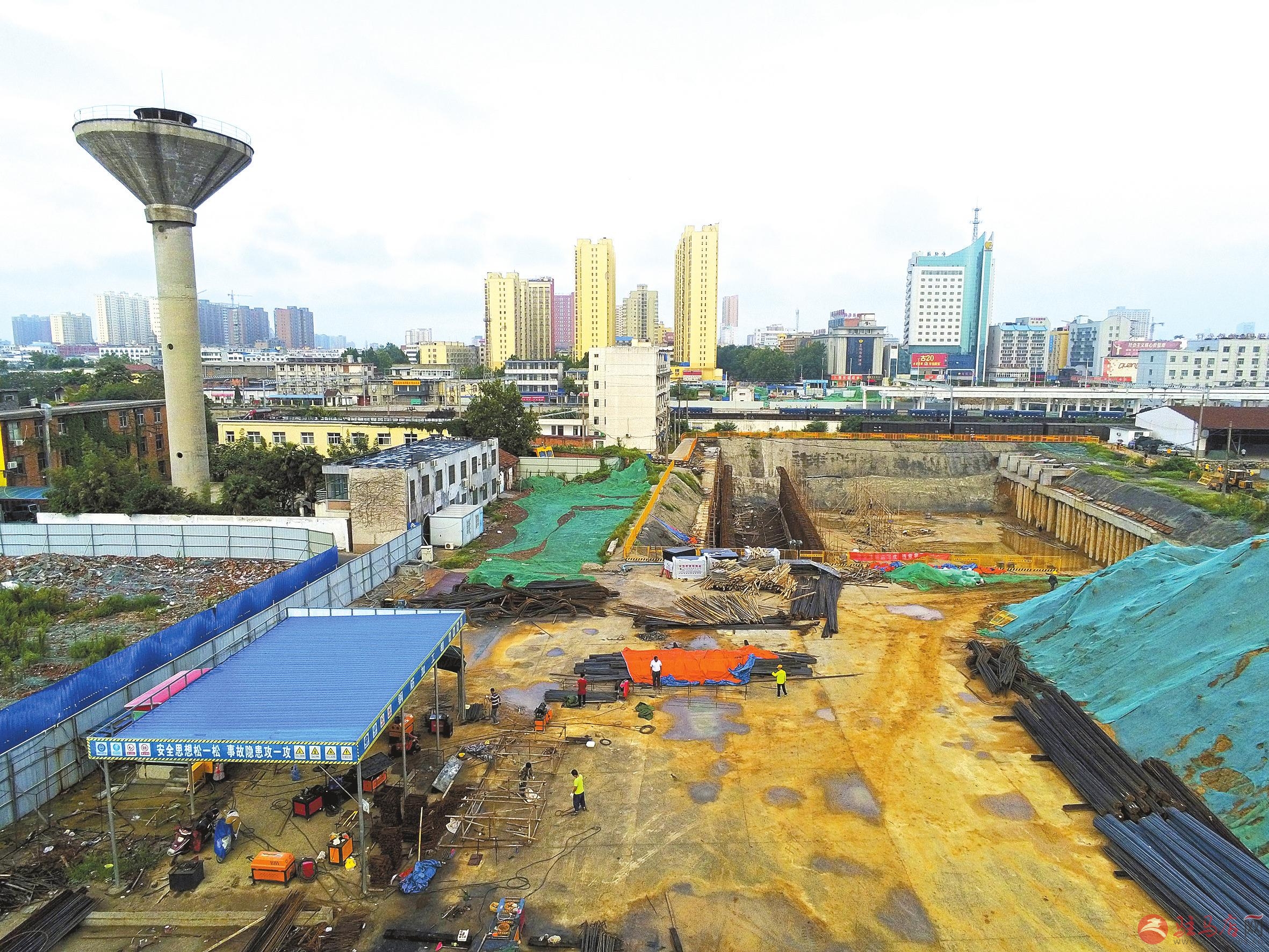 8月2日,无人机拍下市解放大道下穿京广铁路立交桥工程工地场景。