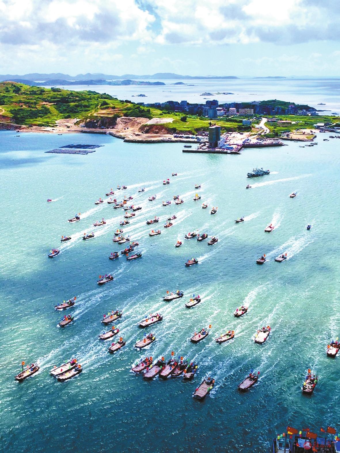 8月3日,在首届福建福清开渔节上,渔船驶向大海(无人机拍摄)。