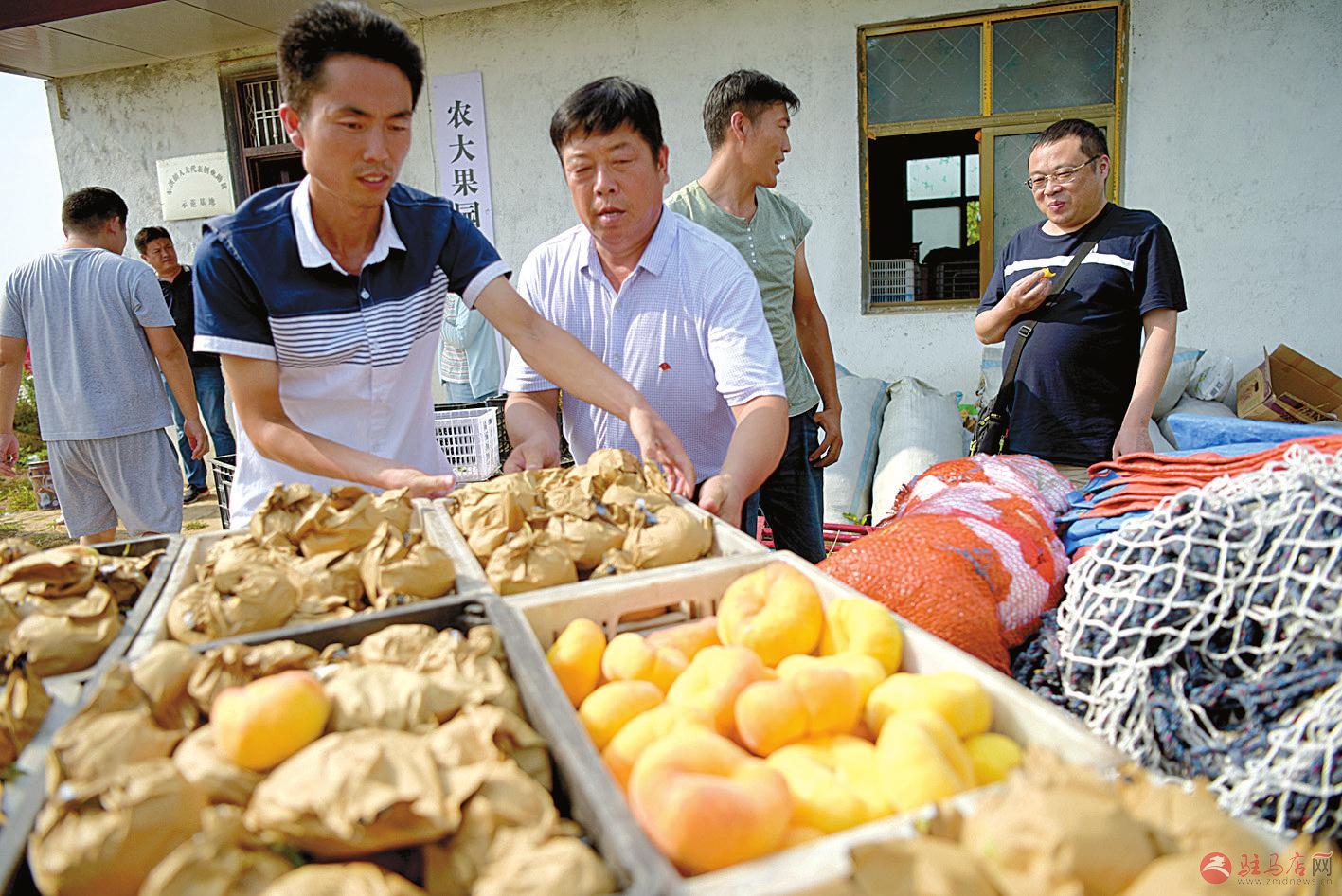 “这里的黄金蟠桃个头大、含糖量高,用了豆粕、油渣才能结出这么好的桃子。”驻马店水果批发商魏俊涛一边把新鲜的蟠桃装到卡车上,一边对笔者说,“我每天从市区来这里拉桃子,一次拉300公斤左右,现在从地里走,下午5时赶回市里的批发市场,7时前就被抢光了。”